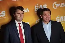 Comme Kirk, Grimes trouve sur son chemin un donateur conservateur souhaitant financer son organisation para-étudiante : c'est George Farmer (ancien candidat eurodéputé pour le « Brexit Party » non retenu). Il semble y avoir eu d'autres donateurs ou fondateurs, mais qui resteront anonymes[99],[100]. Grimes suit le modèle de Turning Point USA créé pour soutenir Donald Trump[101]. Il est salué par des leaders de l'extrême droite anglaise tels que Priti Patel, Jacob Rees-Mogg et Nigel Farage[102].