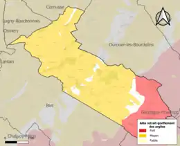La commune est vulnérable au risque de mouvements de terrains constitué principalement du retrait-gonflement des sols argileux[17]. Cet aléa est susceptible d'engendrer des dommages importants aux bâtiments en cas d’alternance de périodes de sécheresse et de pluie. 94,1 % de la superficie communale est en aléa moyen ou fort (90 % au niveau départemental et 48,5 % au niveau national). Sur les 174 bâtiments dénombrés sur la commune en 2019, 162 sont en aléa moyen ou fort, soit 93 %, à comparer aux 83 % au niveau départemental et 54 % au niveau national. Une cartographie de l'exposition du territoire national au retrait gonflement des sols argileux est disponible sur le site du BRGM[18],[Carte 2].