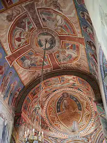 Lors des travaux de restauration de l’église, le curé Lenoir fait disparaître des peintures semblables à celle de l’église de la commune voisine de Chalivoy-Milon. Totalement repeintes, ces fresques se présentent maintenant comme des témoignages du style des peintures murales du XIXe siècle. Sur les murs nord et sud du chœur, deux scènes sont ajoutées, copiées sur des fresques de l’église de Saint-Savin, à savoir Jésus-Christ accompagné des Évangélistes, et les 24 vieillards. Le peintre restaurateur est un certain Henri Lescalier père, artiste-peintre de Bourges. La chapelle latérale droite, datant du XVe siècle est consacrée au Sacré-Cœur. Les vitraux ont été réalisés par les ateliers Lubin à Tours en 1863[27].