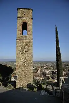 - L'ancienne église et la cité médiévale : leurs emplacements sont marqués par le campanile caractérisant le village. Cette « tour communale » fut construite, au XIXe siècle, sur les bases de l'ancien clocher.