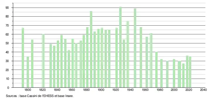 - Population municipale légale en vigueur au 1er janvier 2024, millésimée 2021, définie dans les limites territoriales en vigueur au 1er janvier 2023, date de référence statistique : 1er janvier 2021.