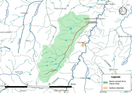 Le Charnay (en rouge) et la zone hydrographique dans laquelle il s'insère.
