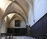 La voûte de cette chapelle ouverte sur la galerie Nord du petit cloître est soutenue par trois fines colonnes.