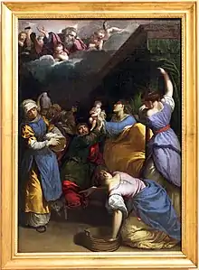 - Ippolito Scarsella, nommé Scarsellino : Nativité de la Vierge[11], [12]aujourd’hui à la Galleria Estense à Modène, Flagellation du Christ, et Madonne di Reggio.