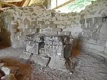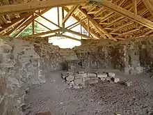 Ruines de l'église cartusienne sous le toit de protection installé par le Conseil départemental de l'Isère (été 2017) | ||||