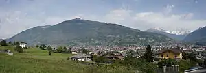 Vue panoramique du territoire communal. En bas, la Cogne. | ||||