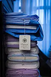 - (en) Shirley Conran, Lace, Londres, Penguin Group, (ISBN 0-7139-0187-X), p. 39« Hocken in the village turned a white-dotted navy silk Charvet dressing gown into "a best dress" for Sunday. »