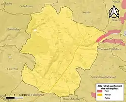 Le retrait-gonflement des sols argileux est susceptible d'engendrer des dommages importants aux bâtiments en cas d’alternance de périodes de sécheresse et de pluie. 99,9 % de la superficie communale est en aléa moyen ou fort (67,4 % au niveau départemental et 48,5 % au niveau national). Sur les 1 608 bâtiments dénombrés sur la commune en 2019, 1 608 sont en aléa moyen ou fort, soit 100 %, à comparer aux 81 % au niveau départemental et 54 % au niveau national. Une cartographie de l'exposition du territoire national au retrait gonflement des sols argileux est disponible sur le site du BRGM[27],[Carte 3].