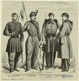 En 1859, dans le Piémont, de nombreux exilés des différents duchés, de Lombardie-Vénétie, du Trentin arrivent en grande partie désireux d'être enrôlés sous les ordres de Victor-Emmanuel II, roi de Sardaigne. Au mois de juin, après la déclaration de la guerre, l'effectif se monte à 40 000 hommes.