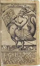 - (de) German Schleifheim von Sulsfort [i. e. Hans Jakob Christoffel Grimmelshausen], Der Abentheurliche Simplicissimus Teutsch / Das ist : Die Beschreibung deß Lebens eines seltzamen Vaganten genant Melchior Sternfels von Fuchshaim..., Montbéliard [i. e. Nuremberg], J. Fillion [i.e. W. E. Felßecker], (lire en ligne), p. 30.