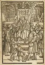 - (de) Jacob Döpler, Theatrum poenarum suppliciorum et executionum criminalium oder Schau-Platz, derer Leibes und Lebens Straffen…, Sondershausen, Ludwig Heinrich Schönermarck, , p. 291 (lire en ligne)