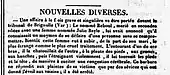 - "Un parisien", « Bavardage », Le Radical, , Première page, 4e colonne (lire en ligne)