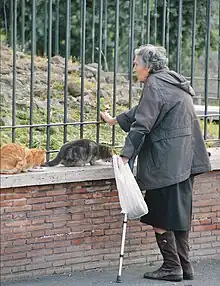 Pour accueillir et soigner ses chats errants, Rome dispose également d’un refuge, dont l’entrée se situe au croisement de Largo Arenula et de la Via Florida non loin du site archéologique de Largo di Torre Argentina[5], le sanctuaire le plus important et le plus connu de la ville[6]. Chaque chat qui y est accepté reçoit un nom après avoir été examiné et enregistré dans une base de données[6]. Cette colonie de chats et ce refuge sont financés par des dons de particuliers[7].