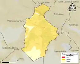 Le retrait-gonflement des sols argileux est susceptible d'engendrer des dommages importants aux bâtiments en cas d’alternance de périodes de sécheresse et de pluie. 85,4 % de la superficie communale est en aléa moyen ou fort (52,8 % au niveau départemental et 48,5 % au niveau national). Sur les 759 bâtiments dénombrés sur la commune en 2019, 759 sont en aléa moyen ou fort, soit 100 %, à comparer aux 70 % au niveau départemental et 54 % au niveau national. Une cartographie de l'exposition du territoire national au retrait gonflement des sols argileux est disponible sur le site du BRGM[21],[Carte 2].