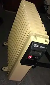 Le radiateur à fluide caloporteur est un radiateur à inertie, basé sur le même principe qu'un radiateur électrique classique mais un fluide caloporteur permet, grâce à sa chaleur massique, de stabiliser la température du radiateur entre deux périodes de chauffe, ce qui améliore le confort et l’efficacité du chauffage[16].
