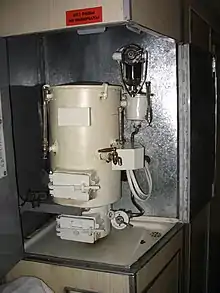 Les chaudières combinées ou combinées combinent le chauffage central avec l'eau chaude sanitaire (ECS) dans un seul appareil. Lorsque l'eau chaude sanitaire est utilisée, une chaudière combinée arrête de pomper l'eau dans le circuit de chauffage et détourne toute la puissance de la chaudière pour chauffer l'eau chaude sanitaire. Certains combis ont de petits réservoirs d'eau internes combinant l'énergie de l'eau stockée et le brûleur à gaz ou à mazout pour obtenir une eau chaude sanitaire plus rapide aux robinets ou pour augmenter le débit d'eau chaude sanitaire[5].