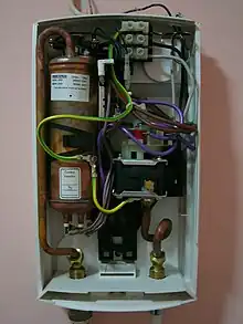 Le chauffe-eau est normalement éteint, mais est équipé de capteurs de débit qui l’active lorsque l’eau les traverse. Une boucle de rétroaction négative est utilisée pour amener l'eau à la température cible. L'eau circule dans un échangeur de chaleur en cuivre et est chauffée par gaz ou chauffage électrique[1]. Comme il n’y a pas de réservoir d’eau chaude finie pouvant être épuisé, le chauffe-eau fournit une alimentation continue[2],[3] Pour protéger les unités dans des environnements acides, des revêtements durables ou d'autres traitements de surface sont disponibles. Les revêtements résistants aux acides peuvent résister à des températures de 1 000 °C[4].