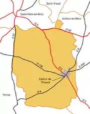 Chauvé se situe à 33 km au sud de Saint-Nazaire et 42 km à l'ouest de Nantes.