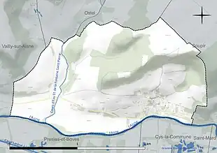 Les communes limitrophes sont Cys-la-Commune, Ostel, Presles-et-Boves, Soupir et Vailly-sur-Aisne.