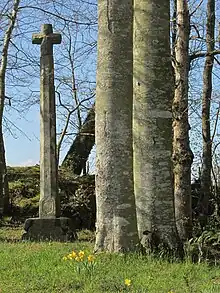 - Croix du Voulge ou Voulgue, en granit de 1782 décorée d'une tête humaine et d'une tête animale[26] et tombes du XVIIIe siècle dans le cimetière.