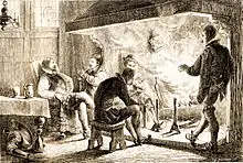 Les cheminées du début du Moyen Âge sont rares et énormes, tenant presque toute la largeur des salles. On y mettait des bancs pour s’asseoir dessous et les pieds dans un panier en vannerie. Elles étaient dotées d'une simple hotte pyramidale suspendue au-dessus du foyer, puis on les munit d’un chambranle porté sur deux montants appelés jambages ou pieds-droits et d’une frise supportant une tablette horizontale. Pendant l’été, on garnissait l’âtre de verdure. Dans les régions tempérées, la brièveté des jours et les rigueurs de l'hiver faisaient se réunir les communautés villageoises à l'occasion de « veillées », soirées autour d'un feu de bois chez des habitants notables. Les veillées ont toutefois préexisté la plupart du temps à la généralisation des cheminées, la veillée ou "réunion à la veillée" s'explique par l'économie des moyens d'éclairage et accessoirement de chauffage, et non pas la présence impérative d'une cheminée.
