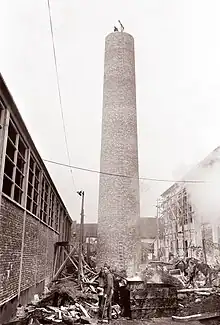 Débuts d'une opération de démolition de cheminée, ici la Schappe de Saint-Rambert (France).