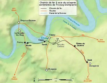 À la fin de la guerre il existe deux réseaux distincts, l'un autour de Roye[5], géré par l'armée française, et l'autre autour de Péronne, géré par les américains du 12e Engineers pour l'armée britannique.