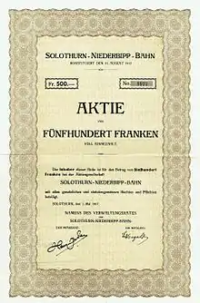 Action de la Chemin de fer Soleure–Niederbipp en date du 1. Mai 1917