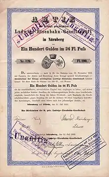Action de la Ludwigs-Eisenbahn-Gesellschaft en date du 31 juillet 1869