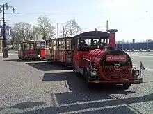 On appelle également train touristique les petits trains urbains sur pneus, qui permettent de faire découvrir une ville ou un site à un public. Ces trains n'ont souvent de train que le nom (le fait que les remorques soient attelées entre elles) et que l'ensemble soit décoré pour rappeler le monde ferroviaire.