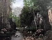Paysage forestier (vers 1876), signé « G. Courbet ».
