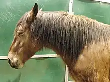 Cheval d'Auvergne monté en randonnée, en 2007 | |