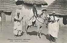 La présence du cheval en Guinée, notamment le long du fleuve Niger, est décrite en 1847 dans l'ouvrage du géographe Amédée Tardieu. Une parade équestre en l'honneur des visiteurs est organisée par le roi de Bousâ, qui « a une taille majestueuse, marche avec aisance, monte bien à cheval »[3] : « Le monarque rentra, puis ressortit presque aussitôt, et parcourut lentement la promenade à cheval, accompagné d'hommes et de femmes fort singulièrement accoutrés, chantant et dansant devant lui ; par derrière venait une troupe de cavaliers bien vêtus, montés sur de vigoureux chevaux et équipés comme pour la guerre »[4]. À l'occasion de son anniversaire, le roi fait tenir des exercices à cheval par ses hommes[5]. Il exécute également une danse « imitant le trot d'un cheval du pays partant pour la guerre »[3]. Au XIXe siècle, les peuples de l'extrême ouest africain ont adopté les armes à feu, abandonnant de fait l'usage des protections caparaçonnées sur leurs chevaux[2].