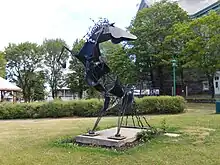 Le Cheval Noir de Michael Bergstaller, sur le terrain de l'église de Trois-Pistoles.