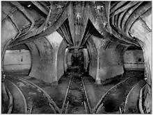Les wagons d'enlèvement des cendres et des débris d'excavation sont équipés de la benne brevetée Newman[67] d'une capacité de 3,5 yards cube (2,7 m3). L'ingénieur Newman, responsable de l'enlèvement des déblais au début de la construction[3], a développé cette benne car l'argile retirée lors de l'excavation du tunnel était si visqueuse qu'elle était difficile à vider avec des wagons à benne latérale conventionnels[68].