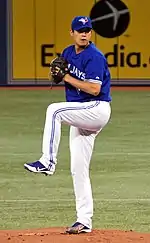 En juin 2013, il est mis sous contrat par les Blue Jays de Toronto[13]. Il amorce 6 parties des Jays, sans grand succès : une victoire, deux défaites et une moyenne de points mérités de 7,67 en 27 manches lancées.
