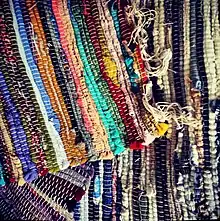 Des chiffons grossièrement assemblés servent de fil de trame pour la fabrication de tapis de chiffon multicolores par de petites industries. Il s'agit de la technique de tissage appelée "lirette"[2].