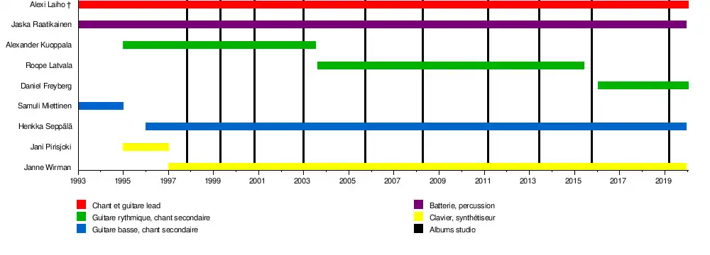 - Alexi Laiho – chant, guitare solo (1993-2019)