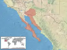 - au Mexique, en Basse-Californie, en Basse-Californie du Sud et dans l'ouest du Sonora[1].