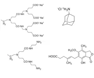 Les dendrimères dans les systèmes d'administration de médicaments sont un exemple d'interactions hôte-invité. L'interaction entre l'hôte et l'invité, le dendrimère et le médicament, respectivement, peut être hydrophobe ou covalente. L'interaction hydrophobe entre l'hôte et l'invité est considérée comme « encapsulée », tandis que les interactions covalentes sont considérées comme conjuguées. Il a été démontré que l'utilisation de dendrimères en médecine améliore l'administration du médicament en augmentant la solubilité et la biodisponibilité du médicament. En conjonction, les dendrimères peuvent augmenter l'absorption cellulaire et la capacité de ciblage, et diminuer la résistance aux médicaments[20].