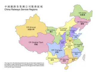 China Railway dirige 21 compagnies filiales qui gèrent le réseau différentes régions de Chine.