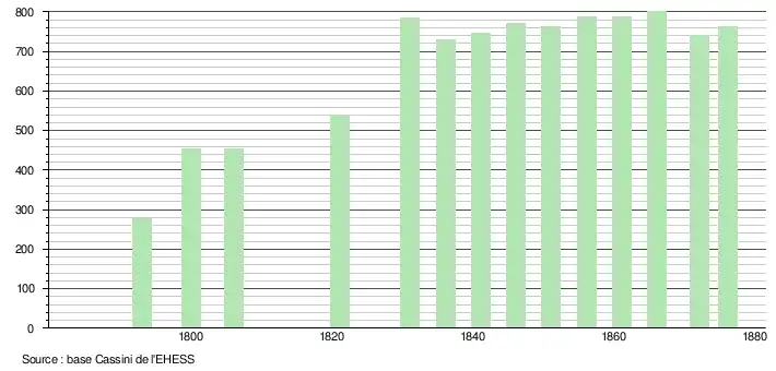 Jusqu'en 1879, la démographie de Chivres-et-Mâchecourt était: