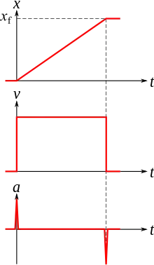 Dans le modèle du solide indéformable, cela correspond à une discontinuité du vecteur vitesse (fonction de Heaviside), qui entraîne une valeur infinie de l'accélération, sous la forme d'un dirac. En vertu du principe fondamental de la dynamique, un choc correspond également à un pic de Dirac (« infini ») de force ou de couple.