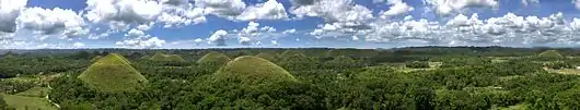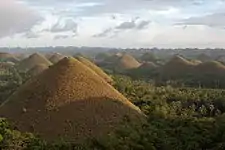 Chocolate Hills est une formation géologique peu commune se situant sur l'île de Bohol aux Philippines. Cette formation est composée de 1 268 collines en forme de cône de tailles similaires (qui a dû en comporter plus de 1 700 par le passé). Ces collines sont réparties sur plus de 50 kilomètres carrés. Elles doivent leur nom à leur forme et à la végétation qui devient brune vers la fin de la saison sèche.