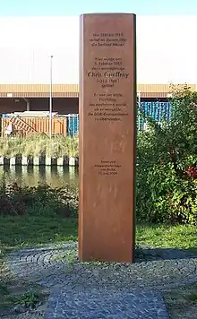 Une croix en hommage à Chris Gueffroy (écrit Chris Geoffroy) fut posée non loin du Reichstag jusqu'à la réunification de l'Allemagne : on rappelait ainsi à l'Ouest toutes les victimes - connues - du Mur.