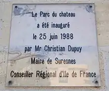 Il multiplie la création d'écoles, de stades, gymnases, maisons de retraite et centre médicaux. Alors qu'en 1983, la ville ne compte qu'une crèche pour 35 000 habitants, Suresnes en possède onze en 2004, pour 40 000 habitants. La cité-jardin est classée au répertoire des sites historiques et réhabilitée de 1985 à 1996. Le quartier République est reconstruit, autour de l'ancien château de la Source, et les friches industrielles du bas de Suresnes sont reconverties. Au début des années 2000, des chantiers sont lancés, comme la reconstruction du marché Caron-Jaurès, dans la cité-jardin. Le nombre d’entreprises augmente, contribuant pour la moitié des ressources fiscales de la ville. Enfin, de 1983 à 1993, la surface des espaces verts publics double[6]. Sous sa première mandature, la rénovation du centre-ville est achevée (avec l'esplanade des Courtieux), la gestion de l’environnement est prise en considération, des équipements vétustes sont remplacés et les cités HLM sont réhabilitées. Le plus ancien établissement scolaire de Suresnes, l'école Jules-Ferry, est entièrement rénovée en 1986. En est créé le village d’enfants Henri-Dunant et, en , l'école maternelle de la République. En , le parc du Château est ouvert, dans les jardins de l'ancienne propriété de la Source, dont les bâtiments ont été détruits deux ans plus tôt pour être lotis[7]. En 1997, deux stations de tramway sont inaugurées le long de la nouvelle ligne 2 du tramway d'Île-de-France, celle de Suresnes-Longchamp accueillant le musée d'histoire urbaine inauguré en 2013. En 2000, l'ancien cinéma Le Capitole rouvre dans un nouveau bâtiment, juste à côté d'une nouvelle médiathèque de 2 000 m2, tandis qu'un conservatoire de musique est créé en 2007, place du Puits-d’Amour. En 2014 est inauguré dans le centre-ville la galerie commerciale Bagatelle, dotée d'une dizaine d'enseignes.