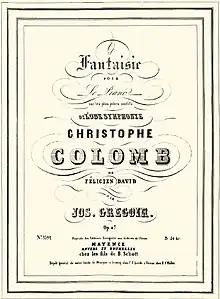 - 1848 : Fantaisie pour piano op. 47 de Joseph Gregoir « sur les plus jolis motifs de l'ode-symphonie Christophe Colomb de Félicien David »