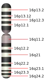 Le chromosome 16 est un des 24 chromosomes humains. C'est l'un des 22 autosomes.