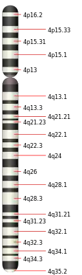 - Les maladies en rapport avec des anomalies génétiques localisées sur le chromosome 4 sont :