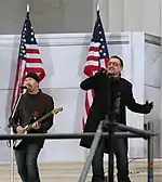 Bono et The Edge lors d'un concert du Boy Tour en mai 1981.